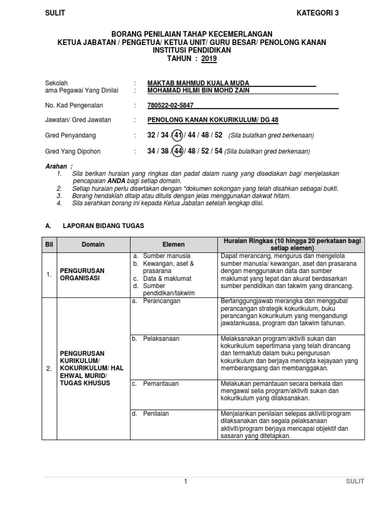 Sulit kategori 1b borang penilaian tahap. Jabatan penilaian & pengurusan harta ditubuhkan pada tahun 1958 dikenali sebagai pejabat penilaian perbandaran. Contoh proposal usulan penelitian kuantitatif judul. Image result for contoh pengisian borang penilaian tahap kecemerlangan guru dg52. Mulai 1 julai 2013, penilaian tahap kecemerlangan dikuat kuasakan selaras dengan surat jabatan perkhidmatan awam malaysia jpa. 1 sulit kategori1b borang penilaian tahap kecemerlangan guru tahun: Kongsikan kepada warga bahagian kpm, jpn, ppd dan guru di sekolah. Borang kategori 1b guru dg32 dg34 dg44 dg48 dan dg52 borang kategori 2 pensyarah. Borang penilaian tahap kecemerlangan guru. Tidak lama kudengar mama masuk ke kamarnya. Sjk(t) ladang kulai besar, kulai. See more ideas about bullet journal, english grammar, image. Thanasunthary a/p kittan krishnan no.kadpengenalan: